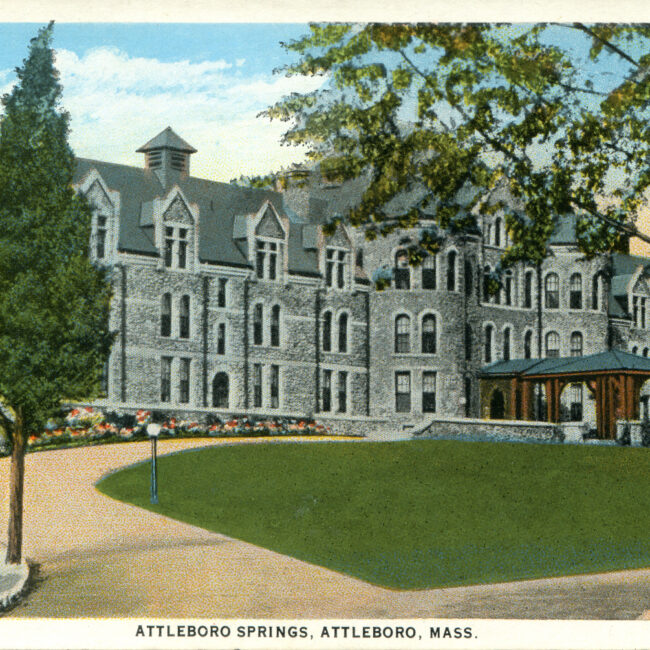 Transcription: Postmarked: History and Notes: Context: Title: Attleboro Springs, Attleboro, Mass. Main Image: The postcard features a colorized photograph of Attleboro Springs in Attleboro, Massachusetts....