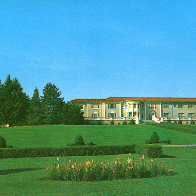 Transcription: Postmarked: History and Notes: Context: Title: Fuller Memorial Sanitarium Main Image: The postcard features a large, elegant building situated on an expansive, well-manicured lawn....