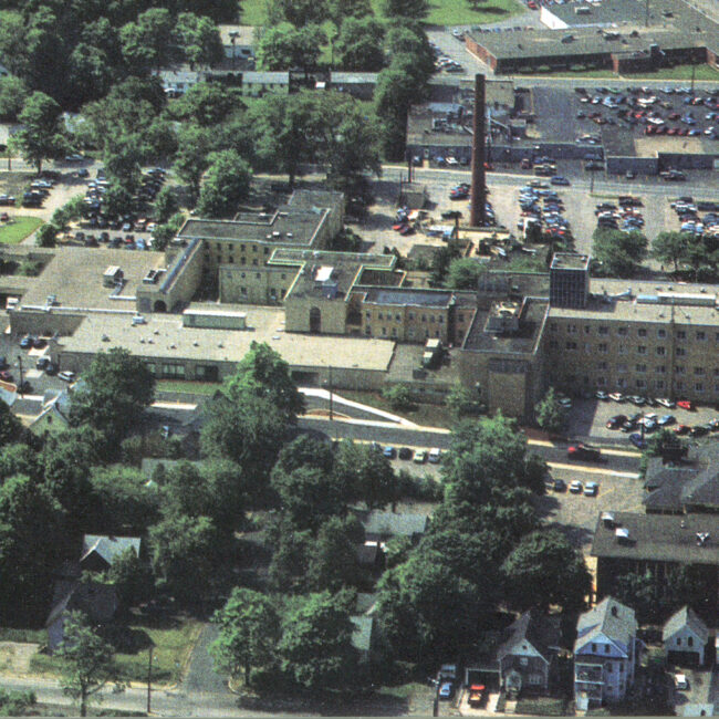 Transcription: Postmarked: History and Notes: Context: Title: Aerial View of Sturdy Memorial Hospital, Attleboro, Mass. Main Image: The postcard features an aerial color photograph of...