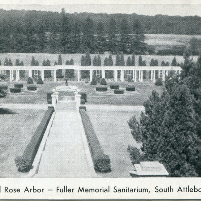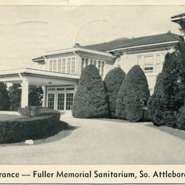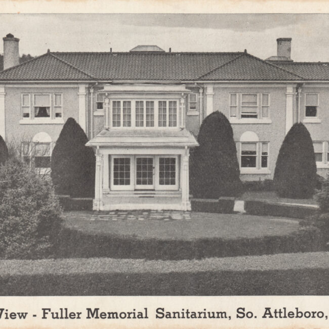 Transcription: Postmarked: History and Notes: Title: Rear View – Fuller Memorial Sanitarium, So. Attleboro, Mass. Main Image: The postcard features a black-and-white photograph of the...