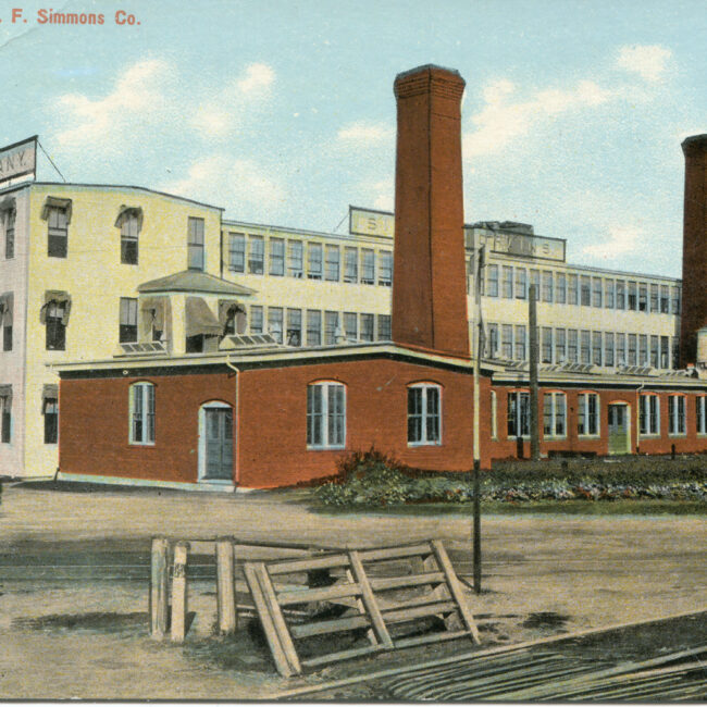 History and Notes: Context: Main Image: The postcard shows the Bliss Bros. Co. and R.F. Simmons Co. factory buildings on North Main St. in Attleboro,...