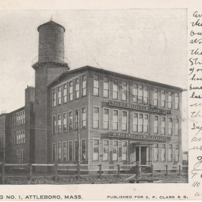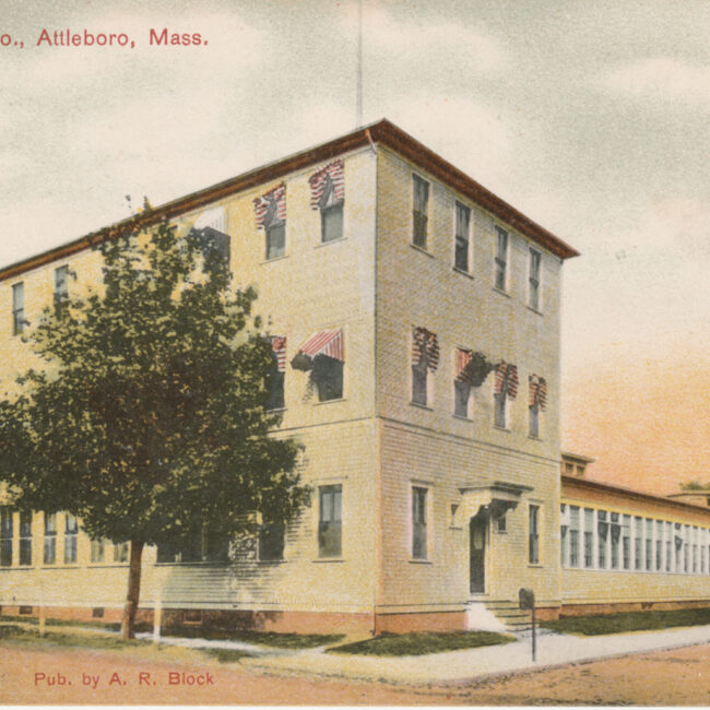 History and Notes: Context: Main Image: The image depicts a historic postcard of the Webster Company building in Attleboro, Massachusetts. The building is prominently...