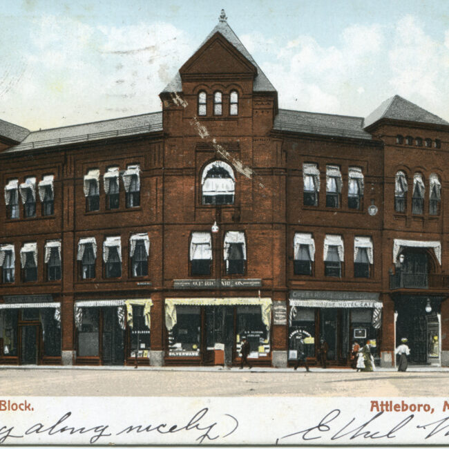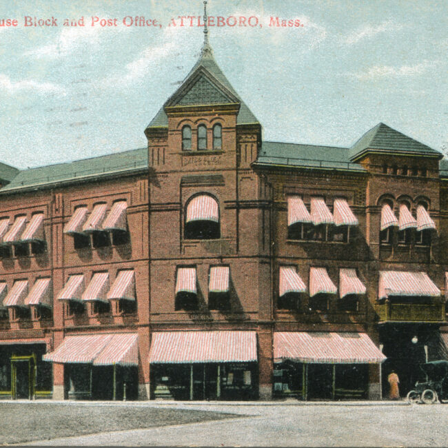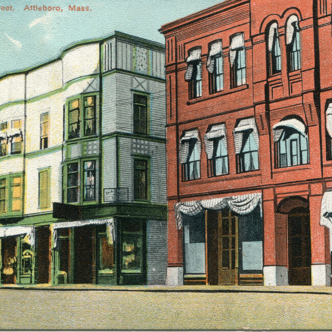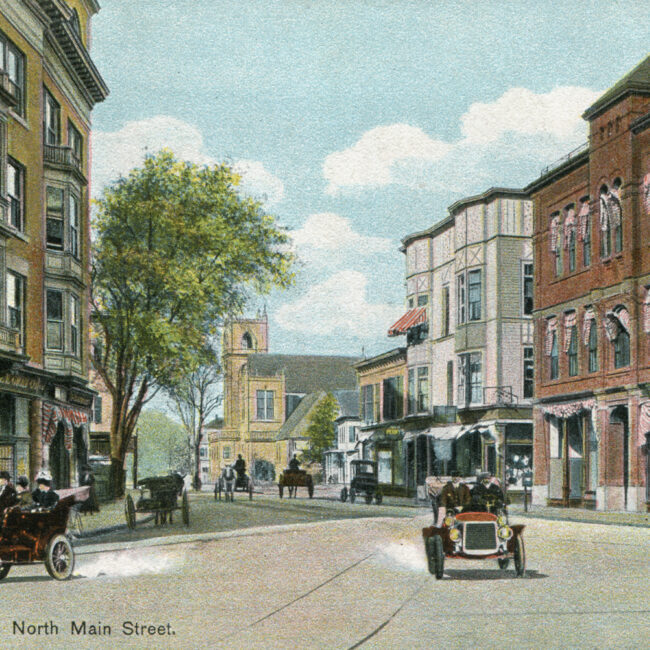 Transcription: Postmarked: History and Notes: Context: Main Image: The postcard features a hand-colored photograph of North Main Street in Attleboro, Massachusetts. Details: Overview: The scene...