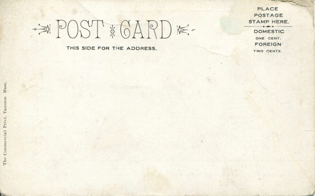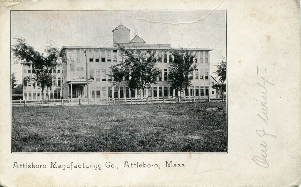 - The bottom of the postcard reads “Attleboro Manufacturing Co., Attleboro, Mass.” in a clear, serif font.