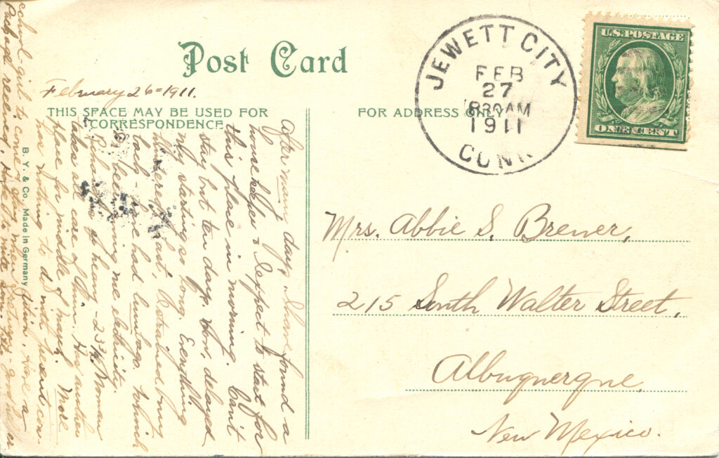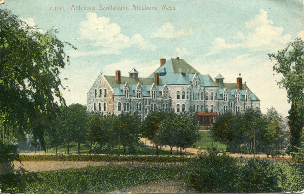 - The top left corner of the postcard reads: “c 1111 – Attleboro Sanitarium, Attleboro, Mass.”