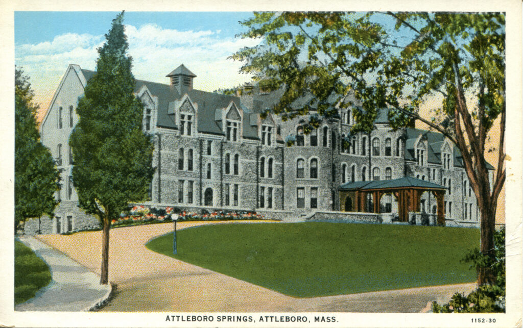 - Caption: The caption at the bottom of the postcard reads “Attleboro Springs, Attleboro, Mass.” with a number “1152-30” on the lower right corner.