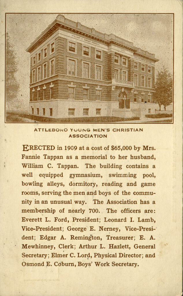 Main Image: The postcard features the Attleboro YMCA building, similar to the previous postcard.