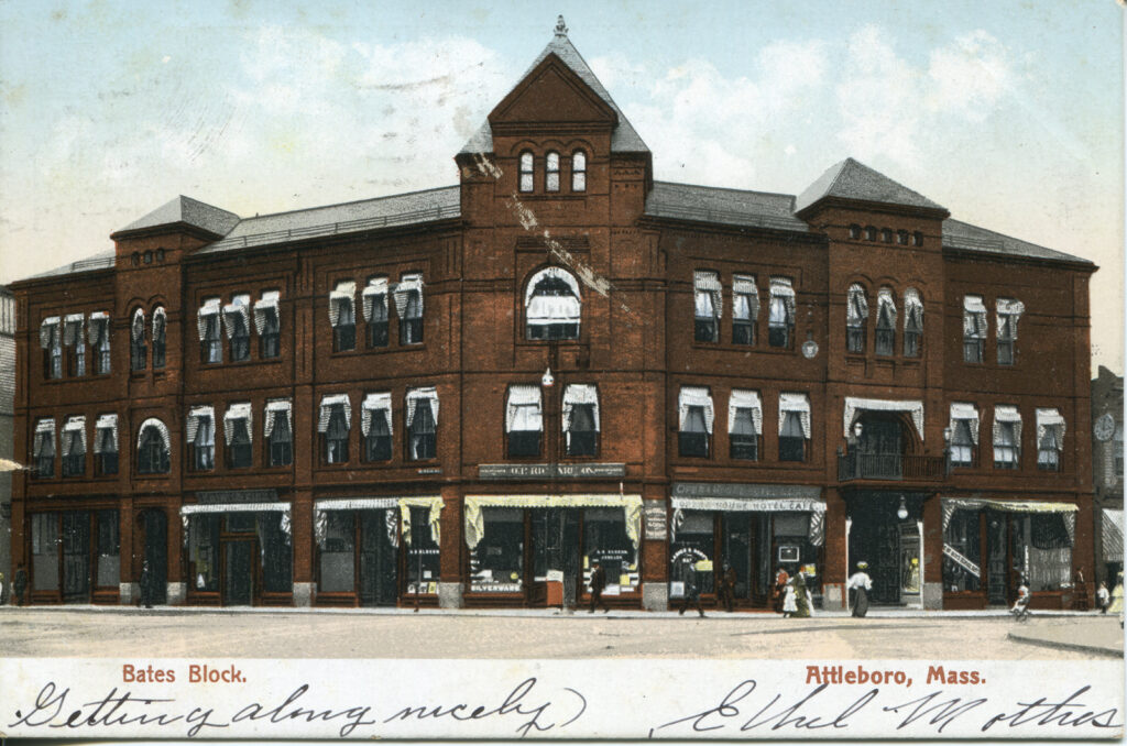 - This postcard captures Bates Block during a time when it served as a central hub for commerce and culture in Attleboro.