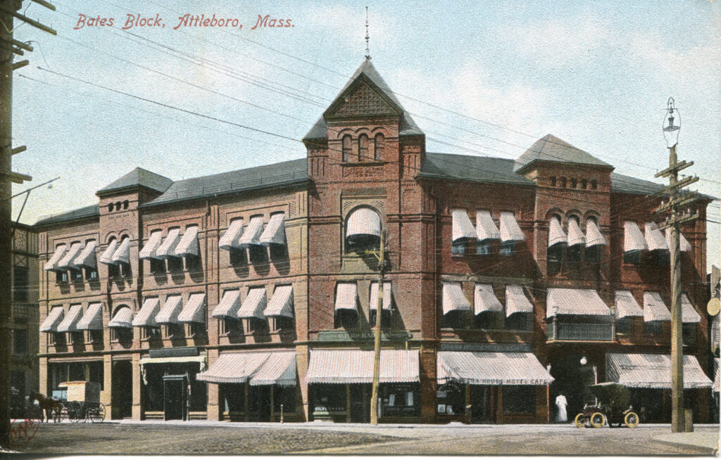 - The text at the top reads, “Bates Opera House Block and Post Office, Attleboro, Mass” and “5514.”
