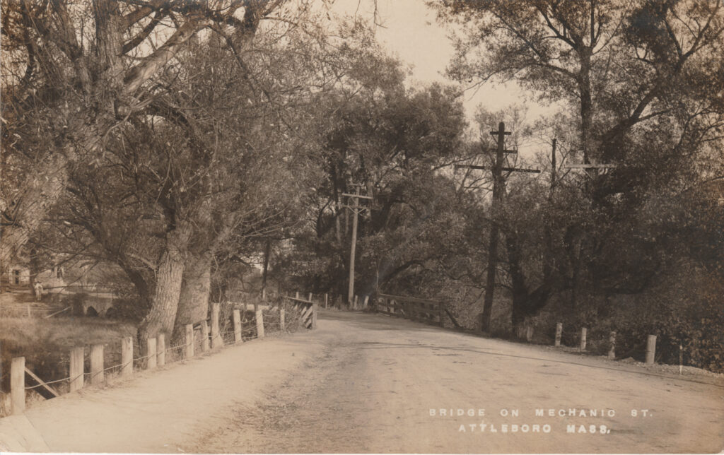 - The text at the bottom right reads “Bridge on Mechanic St., Attleboro, Mass.”