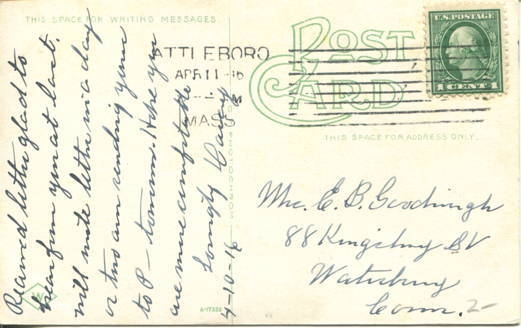 Will write letter in a day or two am sending you some postals to – towns. Hope you are more comfortable. Yours lovingly,