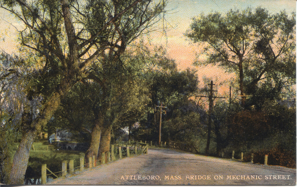 - The text at the bottom reads “ATTLEBORO, MASS. BRIDGE ON MECHANIC STREET.”
