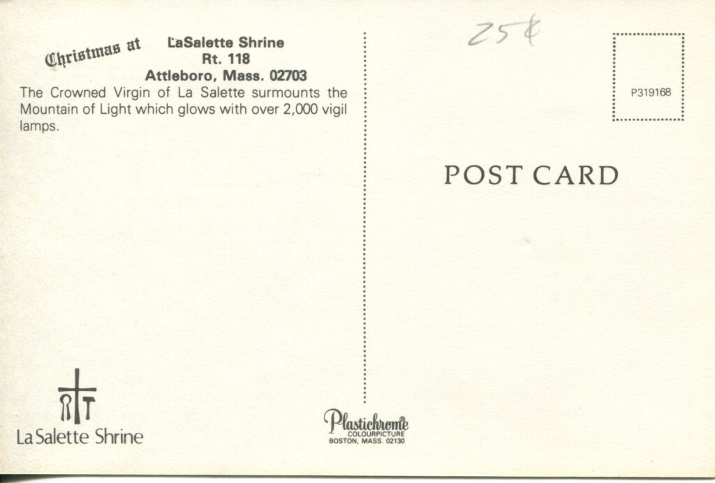 - Religious Significance: The postcard likely represents a significant religious site or a special Christmas display, focusing on the statue and the holiday decorations.