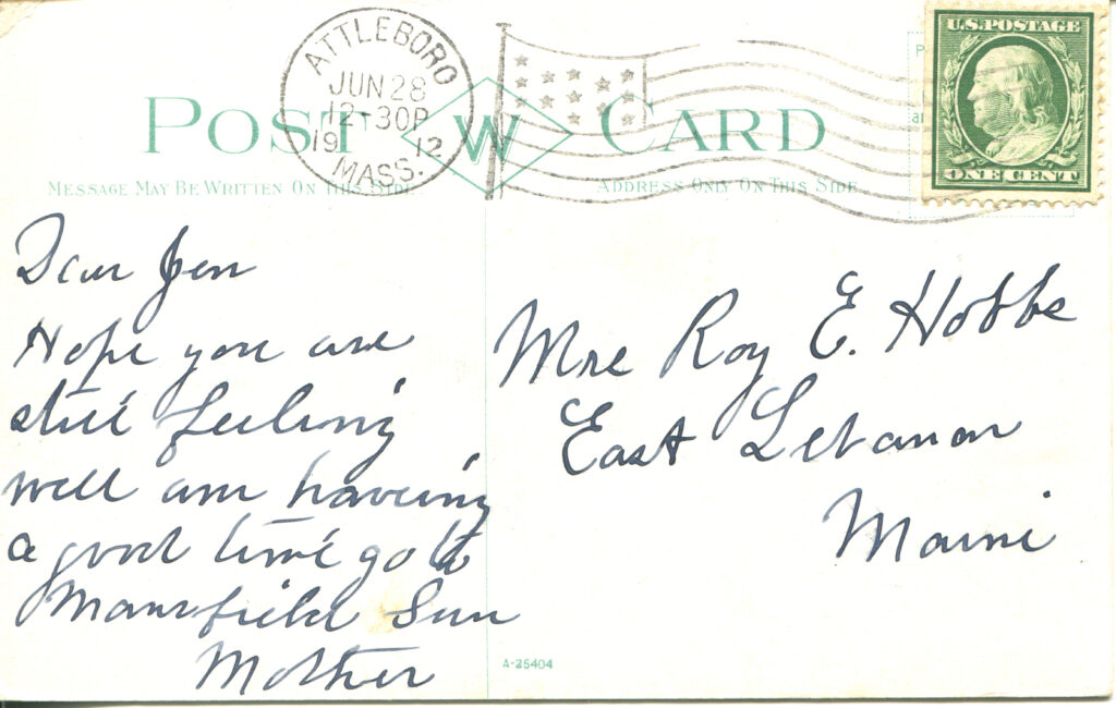 Dear Jen Hope you are still feeling well am having a good time got to Mansfield Sun Mother