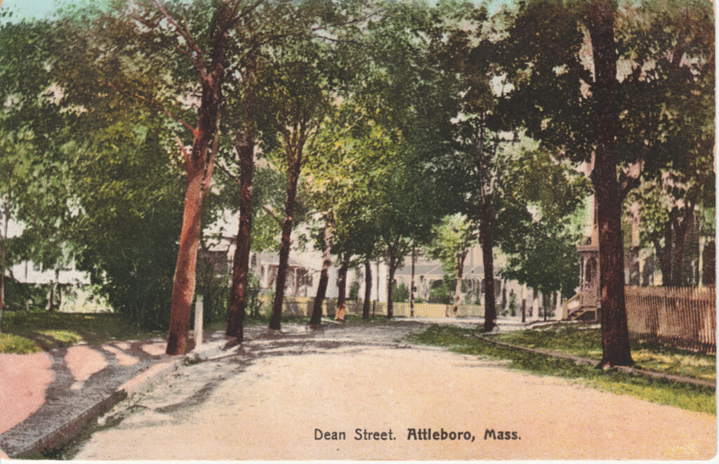 - The caption “Dean Street. Attleboro, Mass.” is clearly printed at the bottom of the postcard.