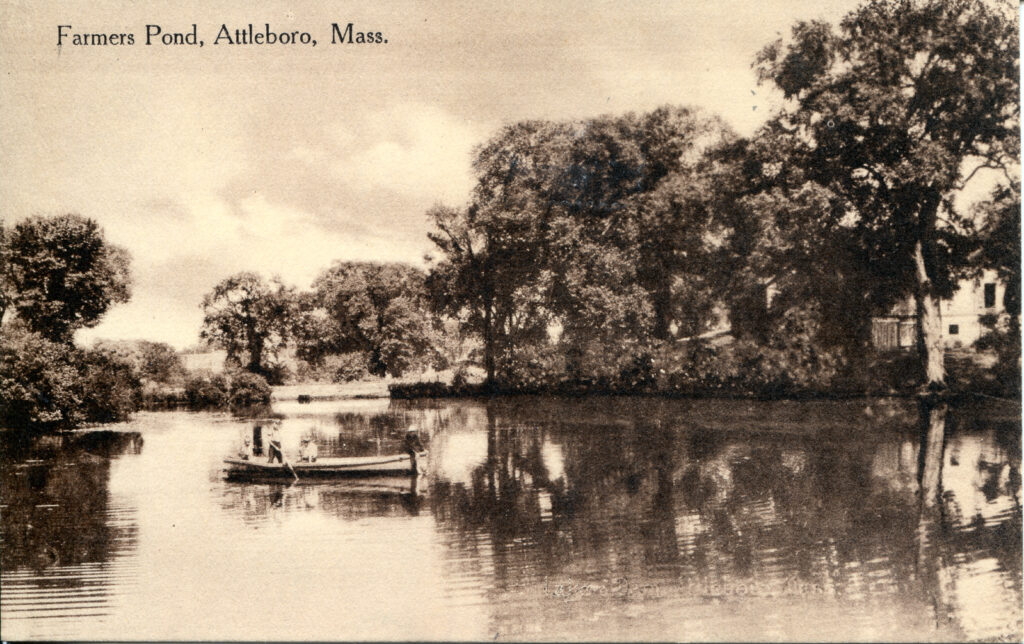 - The text at the top left reads “Farmers Pond, Attleboro, Mass.”