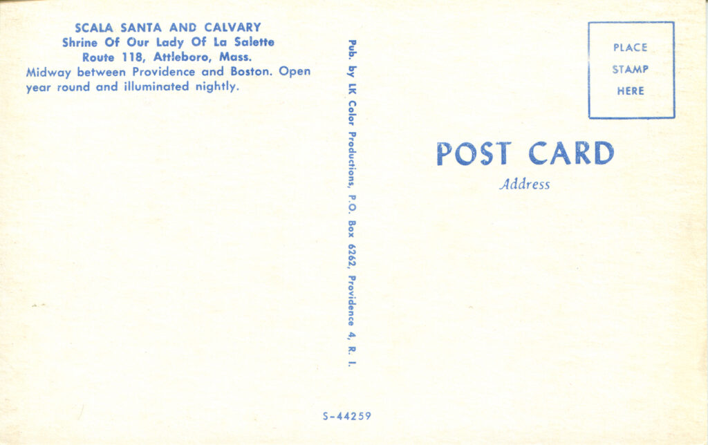 Context: Main Image: The postcard features a color photograph of a religious site, specifically the “Holy Stairs” or “Escalier Saint.”