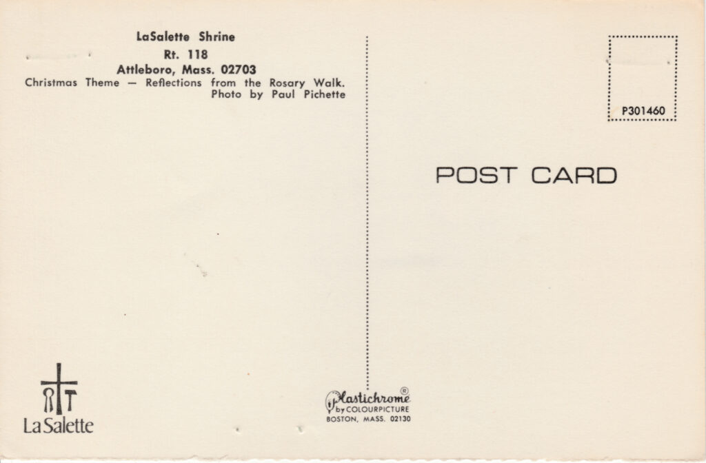 Context: Main Image: The postcard showcases a nighttime scene featuring a beautifully lit area with reflections on a water body.