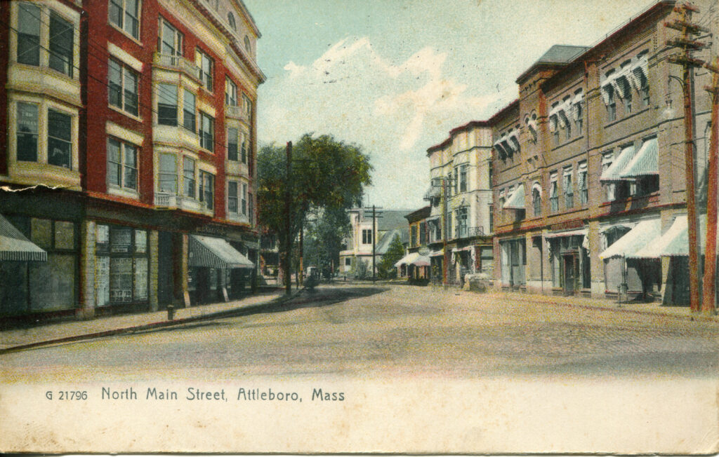 - The illustration provides a clear view of North Main Street, capturing the essence of early 20th-century Attleboro.