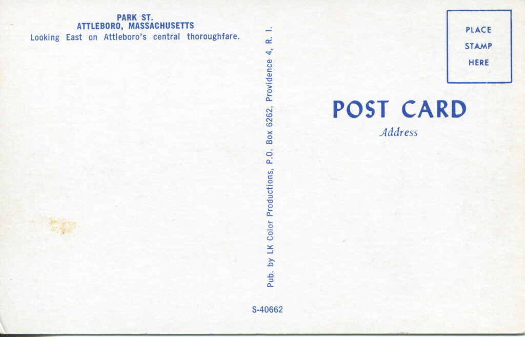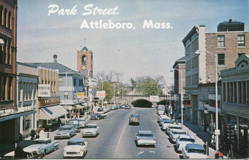 - The text at the top reads, “Park Street, Attleboro, Mass.,” in a bold white font, clearly identifying the location.