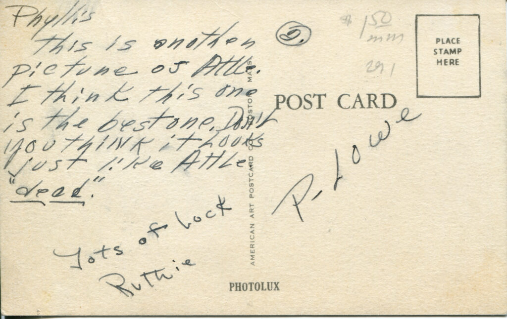 - The presence of cars and the types of vehicles suggest the postcard dates back to the mid-20th century.