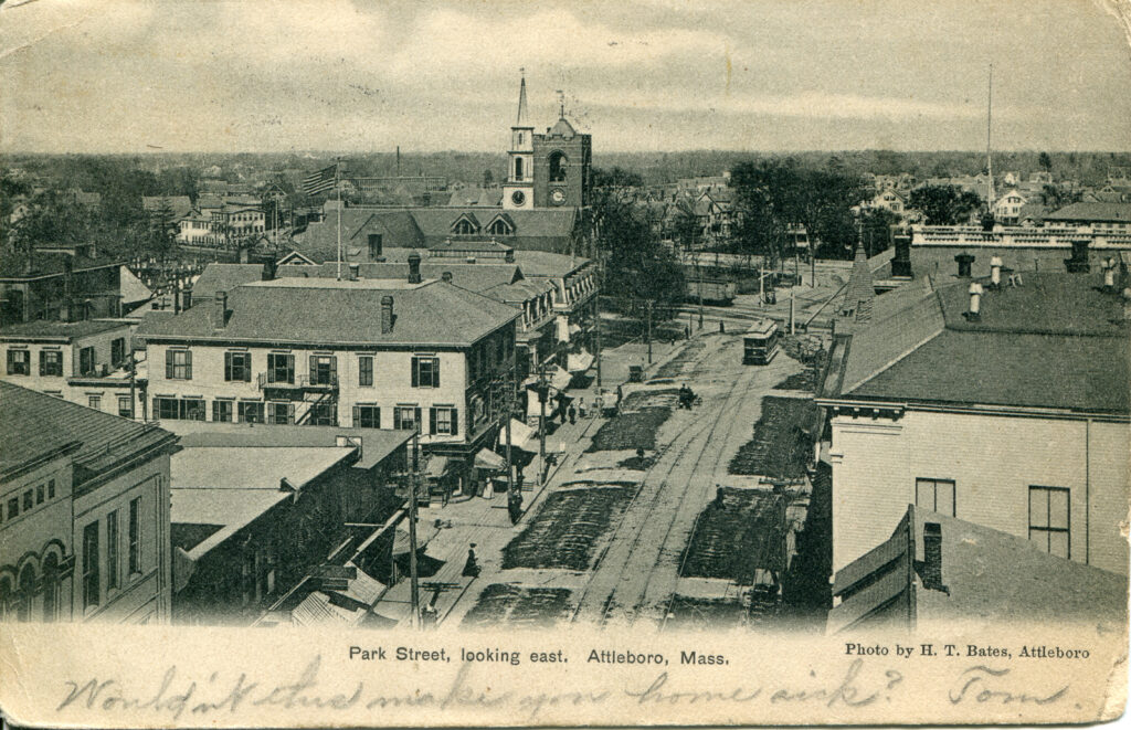 • This postcard offers a glimpse into Park Street’s early 20th-century environment, highlighting its role as a central thoroughfare in Attleboro.