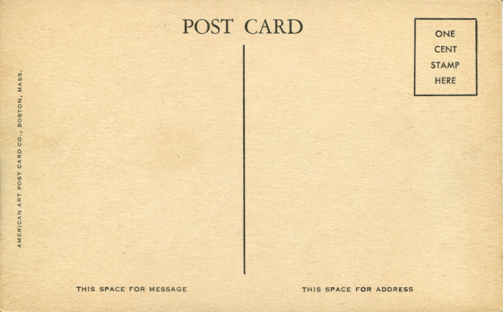 - Surroundings: The postcard also shows part of the surrounding area, including a nearby street with a sign for “Rubberware and Sportwear” and a vintage automobile parked on the street. This adds context and a sense of the era.
