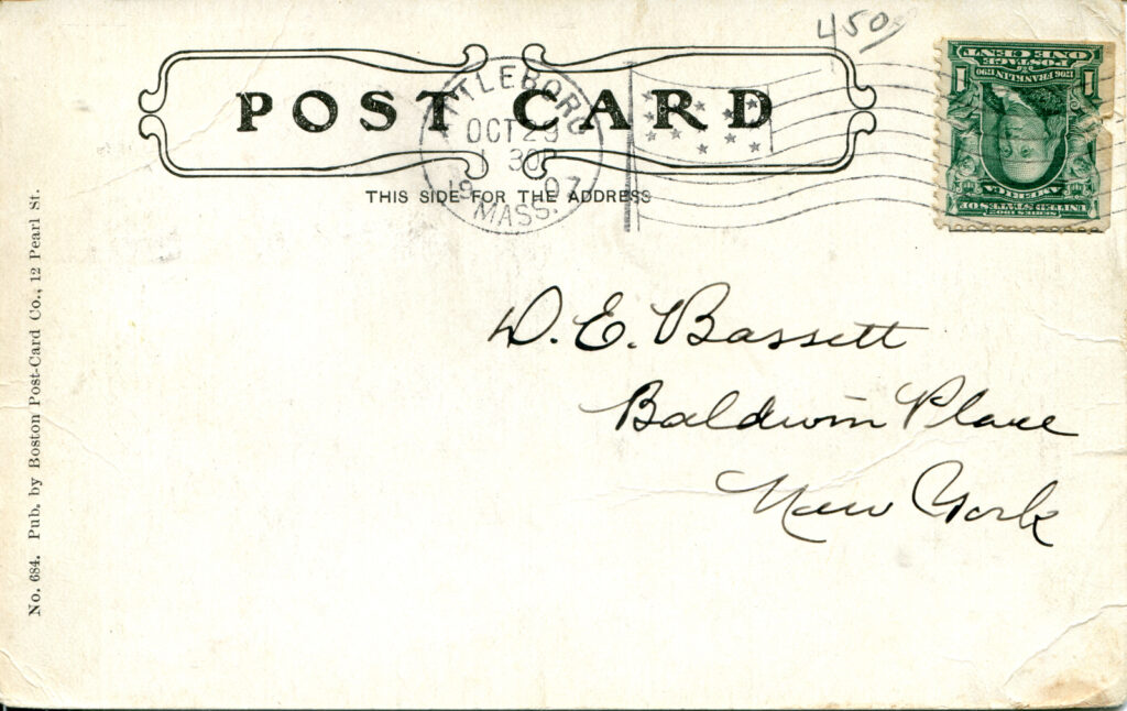 Context: Main Image: The postcard features an illustration of the R.F. Simmons Factory, located in Attleboro, Massachusetts.