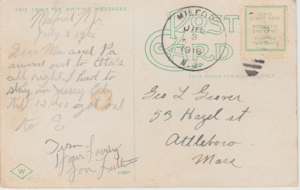 arrived out to Etta’s all right. I had to stay in Jersey City till 12.40. Got out to E.