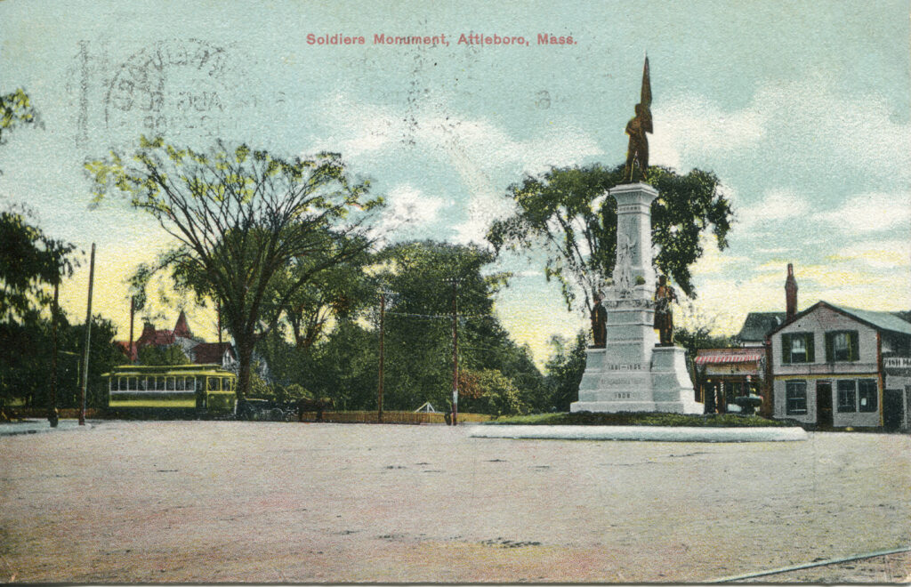 - This postcard captures the significance of the Soldiers Monument in Attleboro.