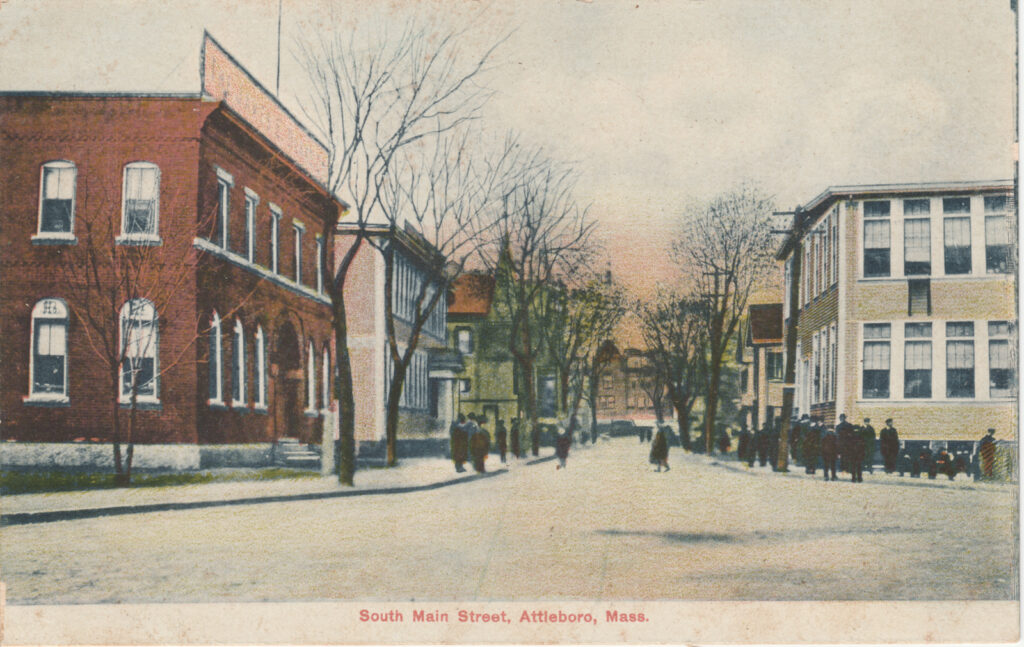 - The caption at the bottom reads “South Main Street, Attleboro, Mass.” providing clear context and location.