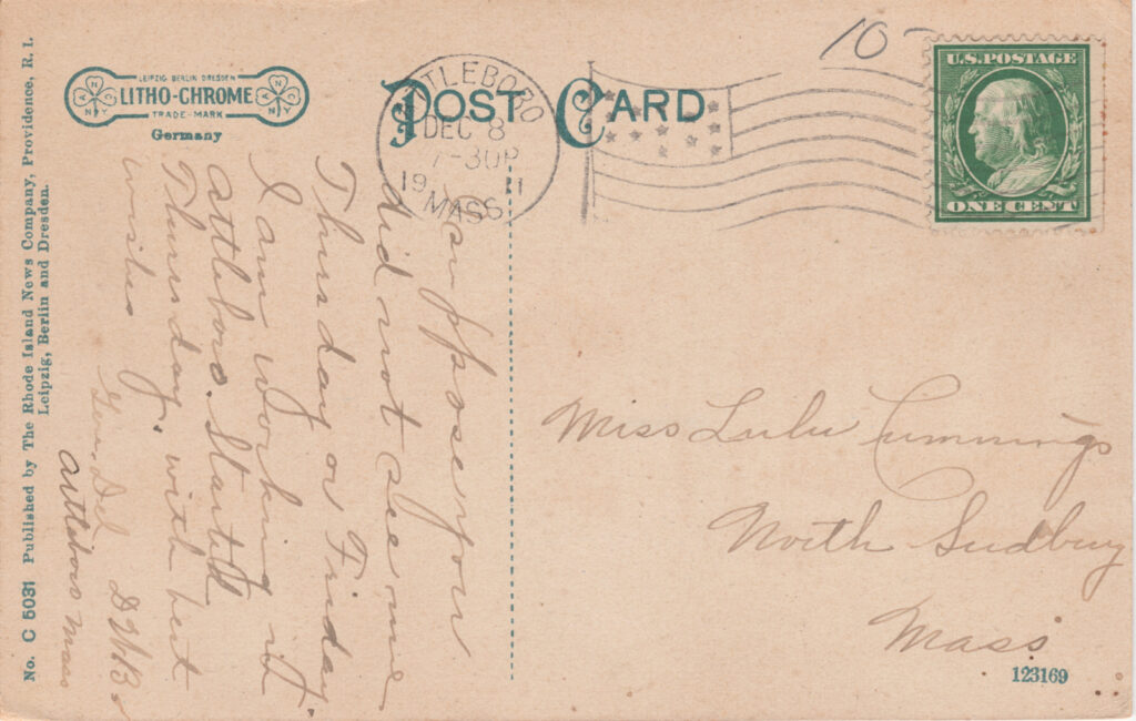 - View and Setting: This postcard depicts a view of South Main Street in Attleboro, Massachusetts.