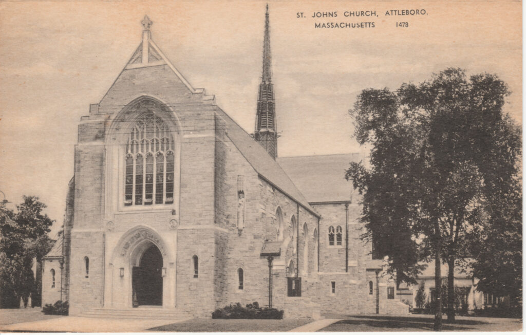 • The upper right corner of the postcard reads “ST. JOHNS CHURCH, ATTLEBORO, MASSACHUSETTS” with the number “1478” next to it.
