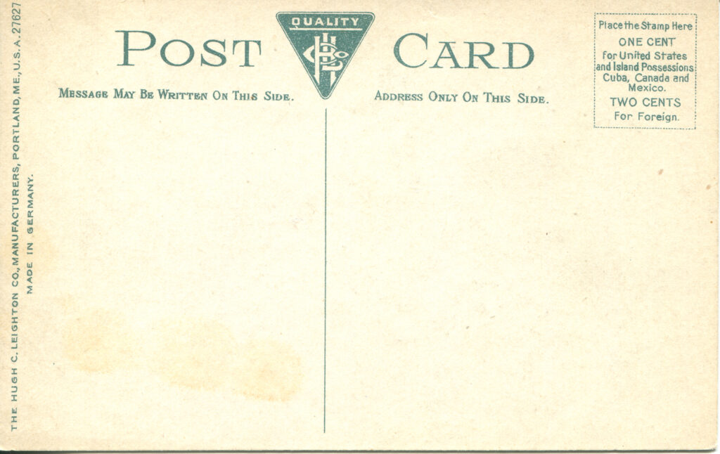 - The top right of the postcard reads “The James E. Blake Co., Attleboro, Mass.” in black text.