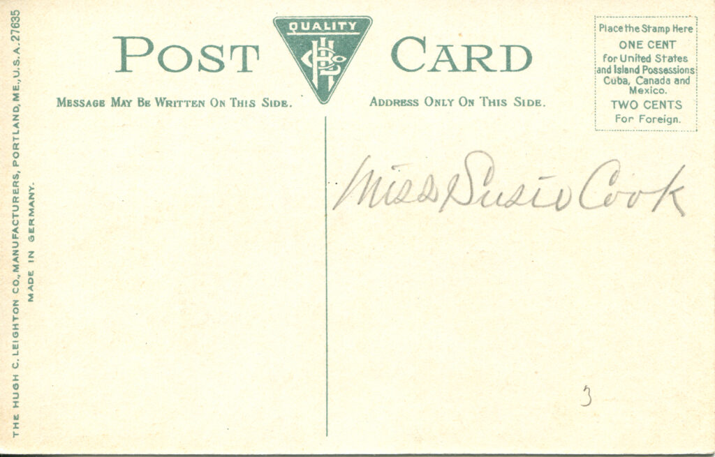 The inclusion of people and vehicles adds a dynamic element to the postcard, giving a glimpse into everyday life during that time.