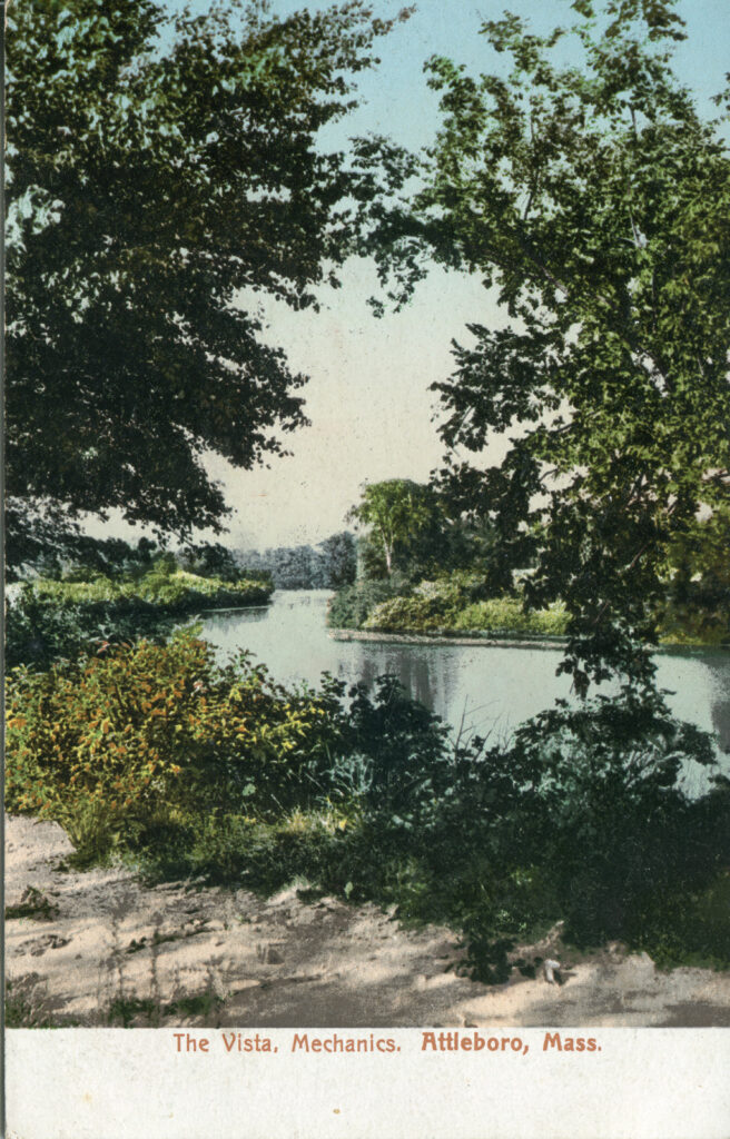 - The postcard captures the serene and picturesque beauty of “The Vista” in Mechanics, showcasing a peaceful and idyllic scene in Attleboro.