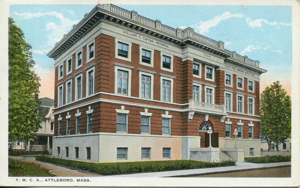Main Image: The postcard prominently features the Young Men’s Christian Association (Y.M.C.A.) building in Attleboro, Massachusetts.